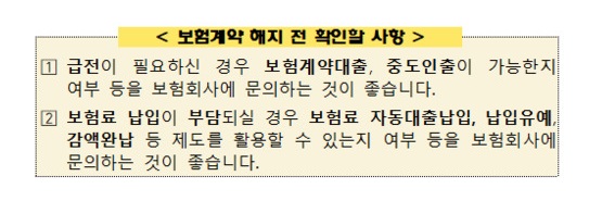 금감원 보험 중도해지보다 다른 방안 찾아야
