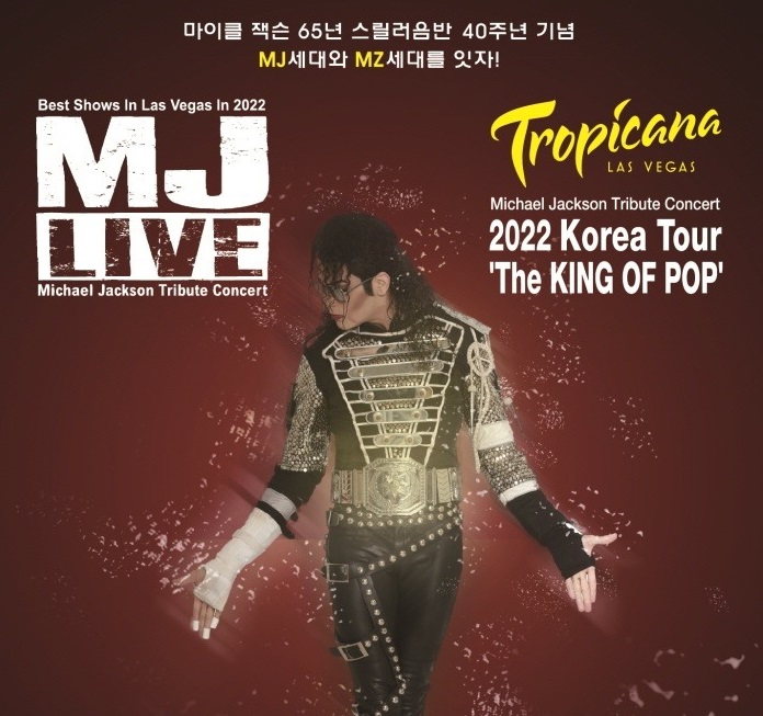 마이클 잭슨 탄생 65년·스릴러 음반 발매 40주년 기념으로 첫 내한하는 'MJ LIVE' 쇼는 마이클잭슨이 남긴 히트곡을 라이브로 재현한 공연입니다. 이번 콘서트쇼는 마이클잭슨의 잭슨 파이브 시절부터 세계 팝 황제로 불리던때까지 마이클 잭슨의 살아생전 명곡들이 다채롭 만들어집니다.14명으로 구성된 라스베이거스 출연진들은 마이클 잭슨 음악과 춤 등을 그때의 감동으로 한국 관객들에게 선보입니다.
